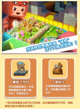 冒险家们在《迷你世界》中创造微缩模型的时候,2020年《迷你世界》依然和冒险家们走在前进的路上,冒险家们的微缩模型可以保存在账号中可以让微缩模型跨存档使用 ,地图创造者可以创造出更多样化并且带有动作的生物和道具 :